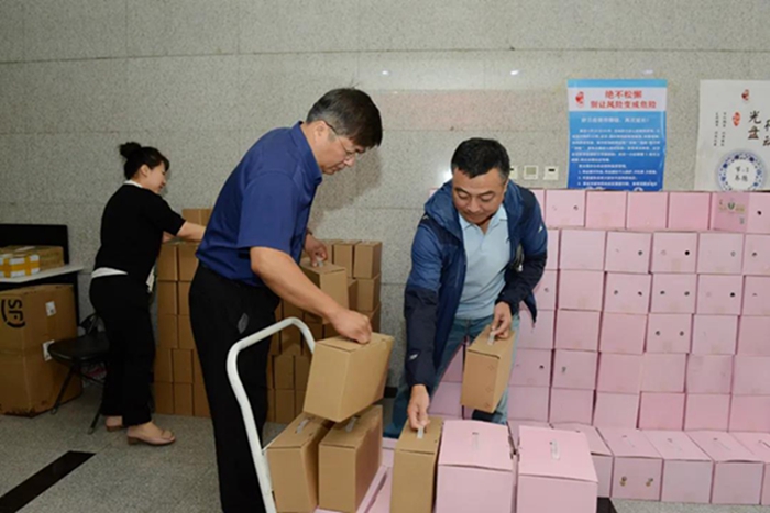 北化集團工會向所屬二級單位積極推薦沙峪溝村特產——農科院主推的無公害、高甜度的西瓜紅紅薯,以及當地經濟作物——板栗。“消費廣告”的推出,立刻引來“圍觀”,各二級單位紛紛響應,9月17日至21日短短5天時間里,集團所屬22家二級單位陸續下單訂貨。9月25日,第一批紅薯和板栗送到了職防院、化研院和華騰新材料干部職工手中。在隨后的幾天里,王唯良與村民們一起起早貪黑,刨紅薯、摘板栗,稱重、裝盒。一趟一趟地往返于北化集團各二級企業與沙峪溝村之間,將新農村建設的成果和一份份樸實村民的祝福送到干部職工手中。