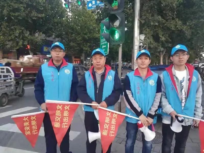 大家時(shí)而引導(dǎo)轉(zhuǎn)彎車輛禮讓斑馬線行人,時(shí)而提醒行人紅燈時(shí)在規(guī)定區(qū)域內(nèi)停留,時(shí)而對(duì)非機(jī)動(dòng)車越線??亢托腥藱M穿馬路等行為進(jìn)行及時(shí)勸導(dǎo),從而引導(dǎo)市民養(yǎng)成文明交通習(xí)慣。