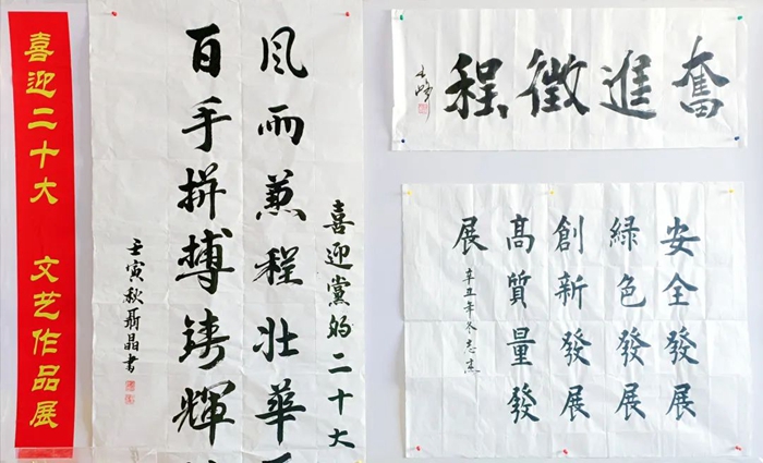 此次展覽,從各單位上交的各類作品中精選出書法作品16件,攝影作品21件,繪畫作品7件及手工藝作品10件進行現場展示。遒勁有力的書法作品,美不勝收的攝影作品和繪畫作品,以及不同風格的手工藝作品洋溢著北京化工集團干部職工期盼黨的二十大勝利召開的喜悅心情,也充分展現出大家豐厚的文化素養和多彩的業余文化生活。