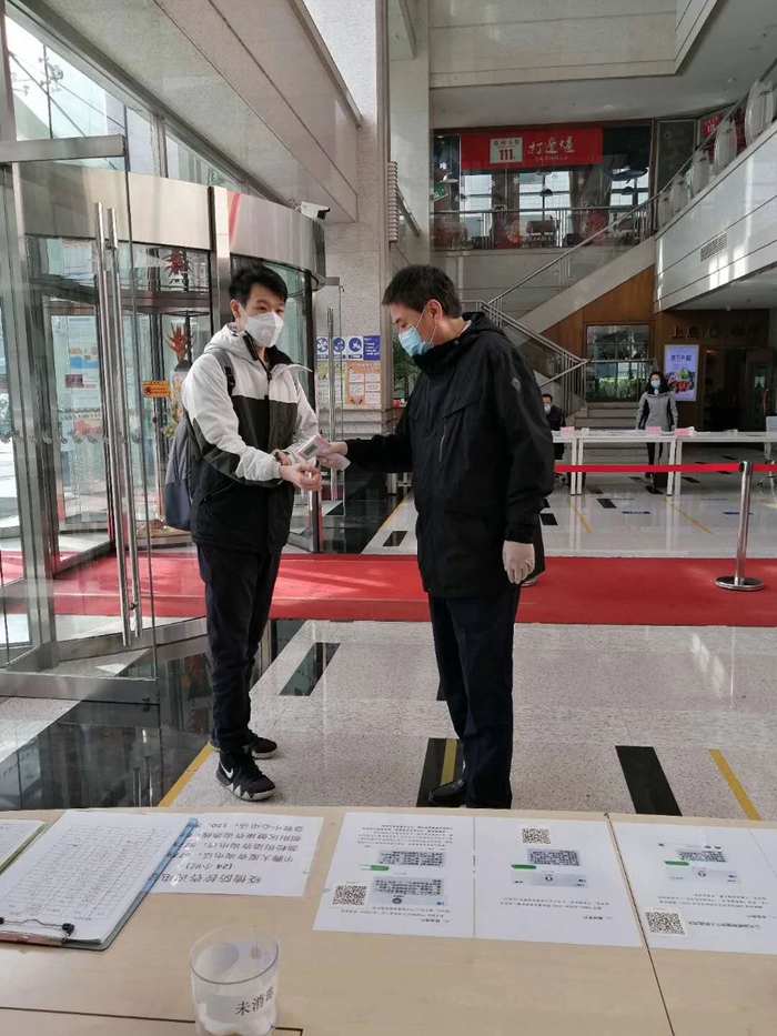 隨著大廈復工客戶的增加,防控壓力越來越大,每天進出大廈的人數都在600人左右,高峰時能達到1000人以上,為保證大廈的防控安全,把風險控制在最小范圍,他幾乎把所有的時間都撲在了疫情防控第一線,測溫登記、車輛進出檢查、人員疏導、電梯轎廂消毒、安全設備運行、空調及新風系統的消毒、防控物資的調配等等工作一樣都不少,一樣都不落。