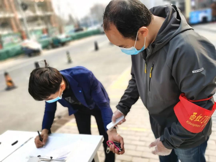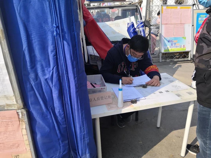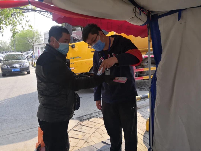 還有一件事我很驕傲。在工作中,我發(fā)現(xiàn)工作人員檢查證件時全都集中在卡口前,再加上村口人員嘈雜,使檢查工作既降低了效率,又容易造成人員聚集,于是我提議,檢查證件和測量體溫這兩項(xiàng)工作分別由兩位同事進(jìn)行,在卡口處檢查證件,進(jìn)入帳篷后由另一位同事對村民們進(jìn)行體溫測量,這樣做提高了人員通過效率,也避免了村口人員聚集。