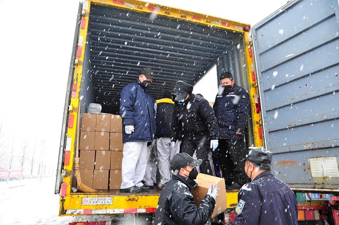 分裝、儲存、配送戰(zhàn)役打響后。為解決夜間裝卸照明問題,他現(xiàn)場指揮安裝臨時防爆照明設(shè)備,挑燈夜戰(zhàn)至晚上22時;雪虐風(fēng)饕的裝卸現(xiàn)場他帶領(lǐng)職工清掃積雪、指揮搬運(yùn);安排食堂熬制姜糖水,為參戰(zhàn)的職工們驅(qū)寒保暖。有這樣的總經(jīng)理,職工們有使不完的勁兒,他們不畏風(fēng)雪,以滿滿的工作熱情,人工手抱肩抗,圓滿完成了分裝、儲存、配送任務(wù)。