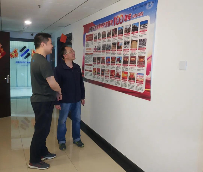 黨史學習教育深入開展以來,化研院在自己的官方微信公眾號上開辟“每周一學一答”活動專欄,使干部職工在公眾號上每次完成相關(guān)黨史知識學習后,再完成5道答題,以引領(lǐng)黨員干部職工學黨史、悟思想,積極營造學習黨史的濃厚氛圍。此外,化研院黨總支在華騰科技大廈五層張貼“黨的百年歷史簡圖”,營造學習黨史濃厚氛圍。
