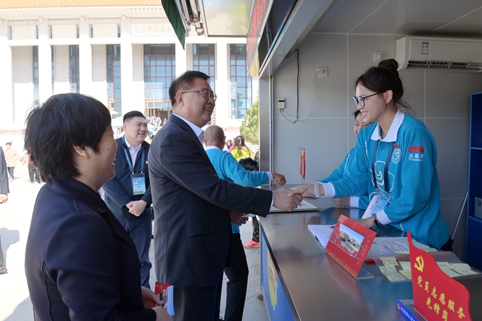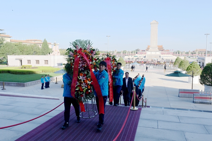 10月11日,北京化工集團黨委書記、董事長陳宇帶隊來到毛主席紀念堂,看望慰問參加志愿服務的北化青年志愿者。
