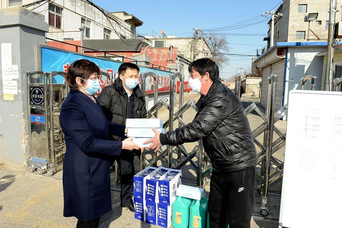 3月13日下午,市國資委黨委副書記、副主任晉秋紅前往大興區西紅門鎮振亞莊村,現場調研北化集團疫情防控和下沉干部工作情況,并向振亞莊村捐贈防護物資和慰問品。北化集團黨委副書記吳瑞峰向晉秋紅一行介紹了集團公司復工復產情況,并就集團公司承擔的七項疫情防控保障任務作了簡要介紹,北化集團團委副書記、下沉團隊臨時黨支部書記聶晶匯報了下沉駐村干部工作情況。