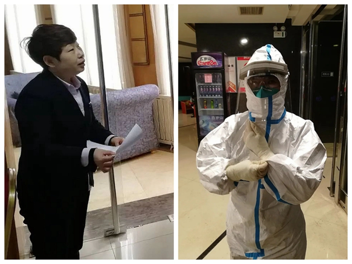 “我是黨員,我先來(lái)”,時(shí)間緊任務(wù)急,作為一名黨員率先垂范,周麗麗勇敢地接下送餐和垃圾收納任務(wù)。為確保完成一日三次的送餐和垃圾收納工作,周麗麗每次都要全副武裝穿上防護(hù)服,并嚴(yán)格按照要求進(jìn)行消殺。俗話說(shuō)隔行如隔山,從未接觸過(guò)防護(hù)服,其穿脫過(guò)程異常艱難,但周麗麗不怕麻煩。為了防止交叉感染,隔離區(qū)域的電梯停止使用,每次賓館人員送餐都要爬樓梯將餐飲搬到樓梯間,然后由全副武裝的周麗麗徒步一個(gè)房間一個(gè)房間地配送。送餐完畢,還要一個(gè)房間一個(gè)房間地收納垃圾。由于防護(hù)服不透氣,剛一行動(dòng)起來(lái),周麗麗已經(jīng)渾身是汗,但是她沒(méi)有退縮,每次都保質(zhì)保量按時(shí)完成了任務(wù)。在數(shù)日的時(shí)間里多次進(jìn)入隔離區(qū),圓滿地完成了任務(wù),真正做到了關(guān)鍵時(shí)刻站得出來(lái),危急時(shí)刻豁得出來(lái)。