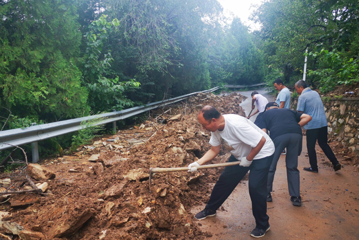 “杜蘇芮”剛過,第一書記王云鵬便與中英水村兩委干部一起徒步往返十幾公里山路,開展災(zāi)情摸排,建立因?yàn)?zāi)受損臺賬,將村里受災(zāi)情況及時上報。在救災(zāi)最緊張的那些天,王云鵬冒著炎炎烈日,不顧“上蒸下煮”、蚊蟲叮咬的惡劣條件,和村干部一起拿著鋤頭、鎬頭、鐵鍬,清理因滑坡阻斷的村內(nèi)道路。他們憑著雙手,清理出幾十米長、兩米多寬被落石泥土覆蓋的道路,給機(jī)動車輛通行創(chuàng)造了條件。