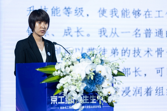 隨后,老前輩代表、全國勞模羅益鋒,中堅代表孟憲冬,青年代表趙小清分別走上前臺,深情講述老中青三代北化人在集團培養(yǎng)下的成長故事。他們扎根于北京化工沃土,直面挑戰(zhàn)、破除困難,與企業(yè)共同成長的經(jīng)歷感動著在場每一個人。