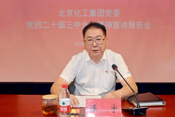 7月31日,北京化工集團(tuán)黨委召開黨的二十屆三中全會精神宣講報(bào)告會,黨委書記、董事長陳宇作宣講報(bào)告;7月29日,集團(tuán)黨委理論學(xué)習(xí)中心組專題學(xué)習(xí)黨的二十屆三中全會精神;7月24日,集團(tuán)黨委常委會集中學(xué)習(xí)黨的二十屆三中全會精神。快速度、多形式,深研學(xué)、重實(shí)效,北京化工集團(tuán)黨委深入學(xué)習(xí)宣傳黨的二十屆三中全會精神,掀起學(xué)習(xí)宣傳的熱潮。