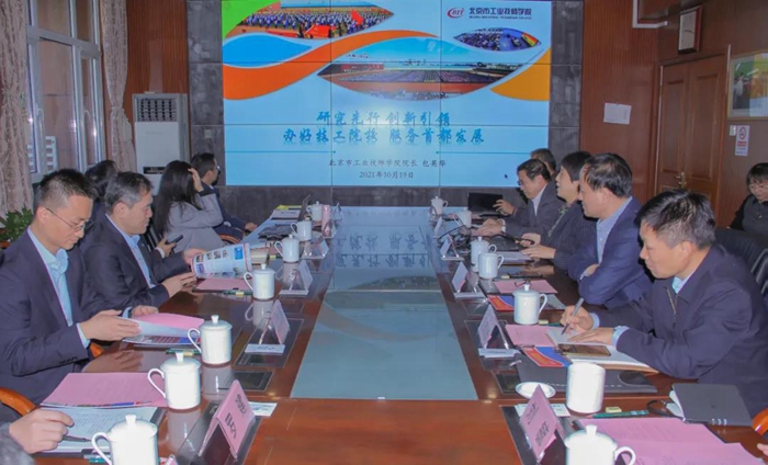 10月19日上午,中化環境公司黨委書記、董事長、總經理崔焱一行9人慕名來到北京市工業技師學院,參觀了解學院豐碩辦學成果,與北京化工集團、學院共商培訓合作事項,北京化工集團黨委書記、董事長王國華,黨委副書記吳瑞峰及相關部室負責人,技師學院相關領導、教師一同參觀、洽談。