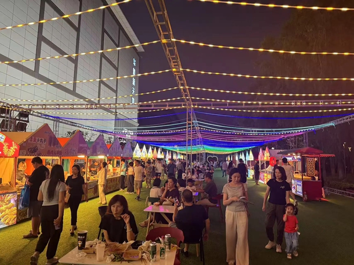 自夜市開啟以來,經濟效益持續向好。華騰新天地商場客流量同比大幅增長,親子家庭消費占比超過 60%。夜市中的市集匯聚了美食、潮玩等幾十家商戶,周末更有精彩的節目演出,現場人氣高漲,成為勁松地區打卡的熱門地標。